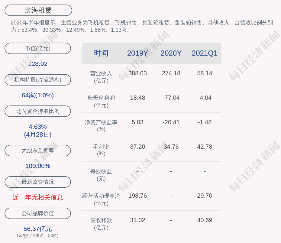 渤海租赁 2021年第一季度净亏损约4 04亿元 每日经济新闻